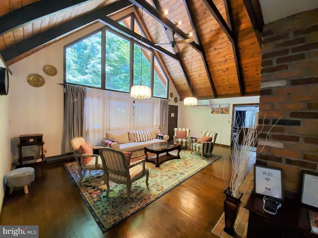 ** ACTIVE SHORT TERM RENTAL** Spacious 4-bedroom, 2.5-bathroom home in Pocono Farms Country Club, ideally located near the golf course! This unique property features an atrium off the kitchen with a cozy eating area, plus a living room with vaulted ceilings, wood-burning fireplace, and a rare indoor barbecue. A large family room provides the perfect space for entertaining, while the enclosed back patio and deck with firepit offer year-round enjoyment. Enjoy the amenities of Pocono Farms including golf, pool, lake, fitness center, and more—perfect for full-time living or a weekend retreat!