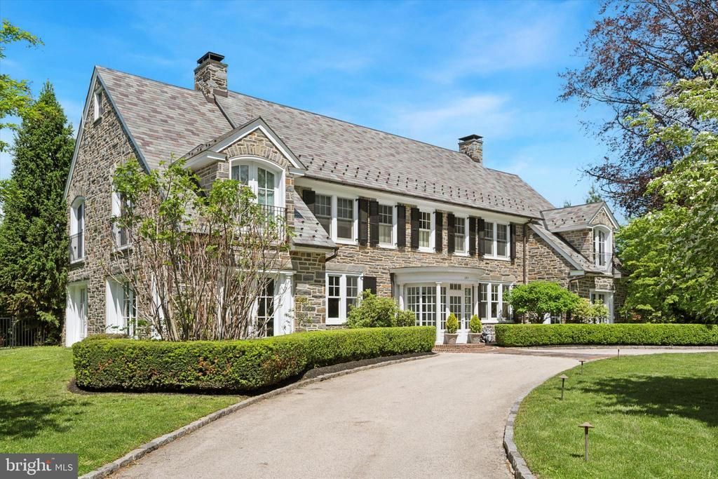 Come home to tasteful luxury in an exceptional location! The unique property at 281 Winding Way offers a lifestyle without compromise: The magnificent 8,700+ sq.-ft., 6BR, 5/2BA residence combines classic 1925 stone construction with a full interior renovation that incorporates such contemporary conveniences as a smart house system and an elevator that reaches all five levels. From the circular stone driveway in front to an in-ground pool/hot tub surrounded by trees, the 1.1-acre property offers the epitome of gracious suburban living while putting the delis, restaurants, shops and services of Merion Station and Narberth borough within walking distance; Center City Philadelphia is minutes away by rail or car. A slate roof & copper tops off the stately stone façade. Beyond the covered portico, you’re immersed in quality. The interior was completely renovated in 2012 with meticulous attention to detail, with Venetian plaster walls and custom millwork, Marvin windows, and hardwood doors with Baldwin brass hardware throughout. The first level above ground features teak herringbone hardwood floors in the foyer, living room and dining room. French doors flanking the living room fireplace lead to a light-filled sunroom with slate floor and multiple double doors opening to back and side terraces. The formal dining room has a fireplace and unique moldings and millwork, and provides access to the family room and to the kitchen and breakfast nook. The chef’s kitchen, renovated more recently 2016, features variable width reclaimed oak floors, an island with seating and storage, white subway tile walls, and all-white custom cabinetry with black soakstone countertops. A palladium window adds a cheery touch over the extra-deep sink, and an oversized stainless-steel fridge/freezer, dual ovens and 6-burner range provide convenience no matter who is cooking or for how many. An arched doorway leads to the side yard. Off the kitchen, a sitting room has one of two powder rooms on this level and elevator access. On the second above-ground level, via elevator or stairs from the foyer or kitchen, escape to a spacious primary suite with hand-painted doors, antique Italian sconces, arched French doors opening to a balcony, a dressing room with a design custome closets, and a luxurious bath with imported dual vanities and mirrors, whirlpool tub with a custom surround, and spacious shower. Also on this level are three large bedrooms, one of which can be accessed via elevator and shares a Jack-and-Jill bath with a second bedroom; a third has front and side balconies. The last room in the second floor has an in-suite luxury bathroom. The third level has a third bedroom and full bath, and two large rooms that could serve as a home gym, TV room or playroom. A finished level below ground home theater, wine cellar with dedicated HVAC system, recreation room, full bath and access to elevator and two-car garage.. For maximum comfort, the home has a 110-gallon water heater and six HVAC systems for the living spaces. Located on a quiet side street and surrounded by other grand homes, this exquisite property is within the top-ranked Lower Merion School District, close to renowned private education institutions. Whether you prefer culture and nightlife or nature, you are just 6 miles from Center City, a mile from the Cynwyd Heritage Trail Cynwyd Station Park trailhead and close to Merion Botanical Park and dozens of other parks and recreational facilities in the township and all that Philadelphia and the lower Main Line have to offer.