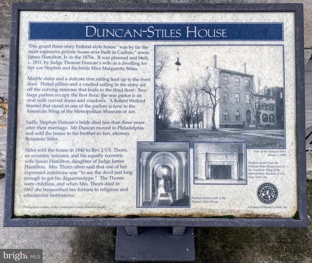 The Historic Duncan-Stiles House was built in 1811 as one of the most expensive, largest, single-family homes ever built in Carlisle. This landmark gem now boasts businesses and apartments on a downtown pedestrian thoroughfare. It retains many of its original details, woodwork, marble, and extravagant beauty! This historic staple has 5 Commercial Suites on the 1st and 2nd levels which feature the original hardwood floors, chandeliers, large windows, and gorgeous original curved wood doors. There is a 1-bedroom apartment located in the basement. Parking Lot in the rear has 5-6 spaces available. The 3rd and 4th floors need some TLC. It would make a spectacular 2-bedroom 2-story apartment for a live-in business owner! They are also perfectly suited for 3 more apartments adding to your rental income! Two 1-bedroom apartments and one studio apartment (Owners have Design plans and Estimates available upon request). Don't miss out on your opportunity to own the Duncan-Stiles House, a piece of landmark history in downtown Carlisle!